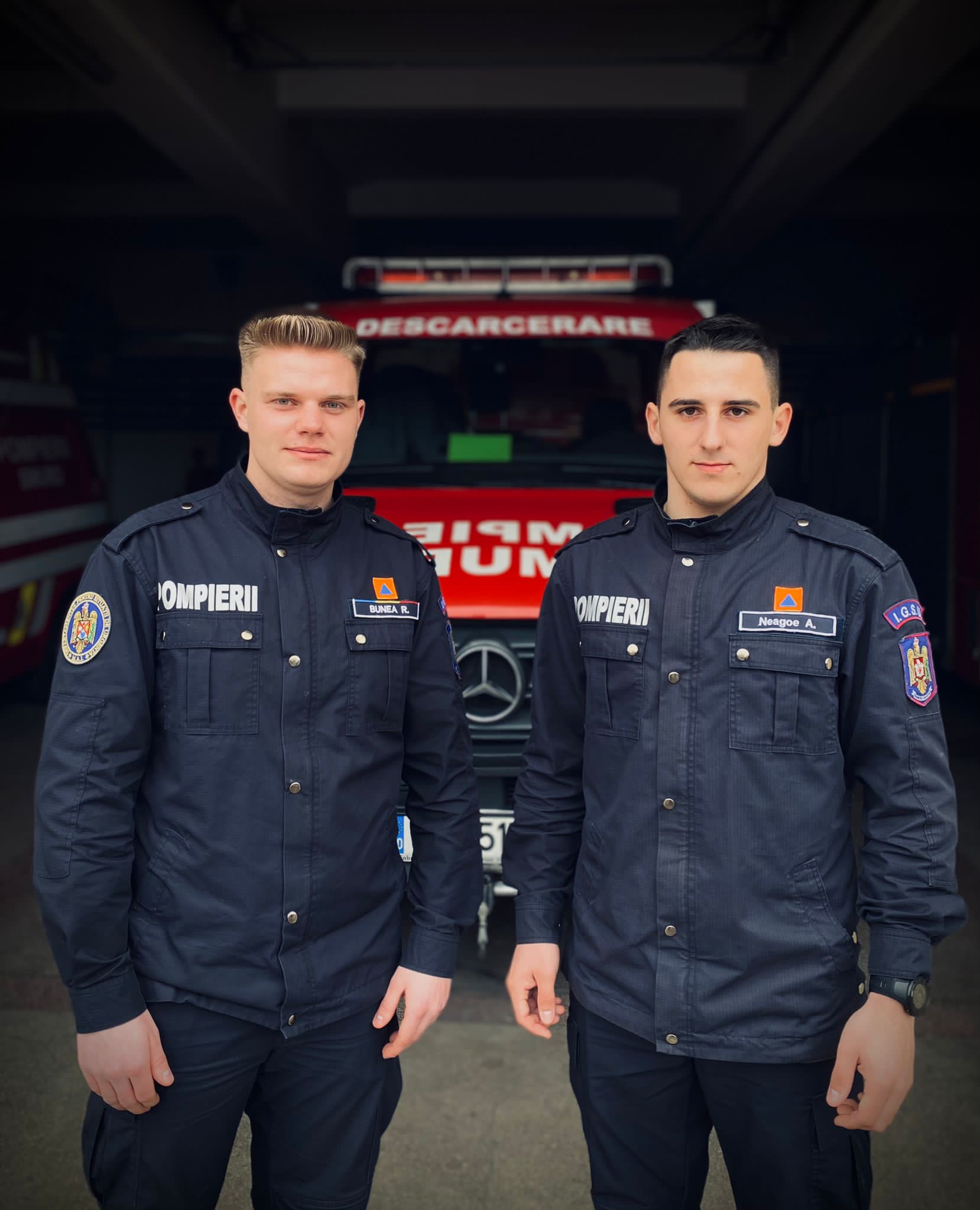 Alin și Robert sunt soldați gradați profesioniști aflați în stagiul de pregătire la centrul organizat în cadrul Detașamentului 1 de Pompieri Ploiești.